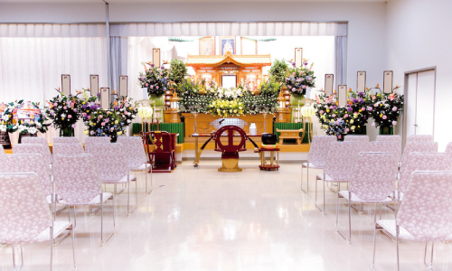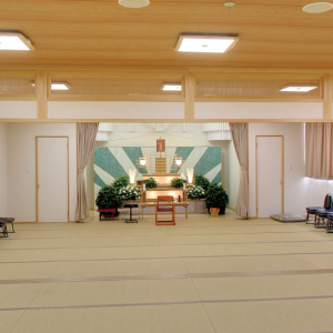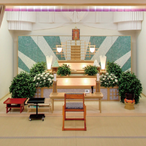 中型の祭壇を設置した式場です。