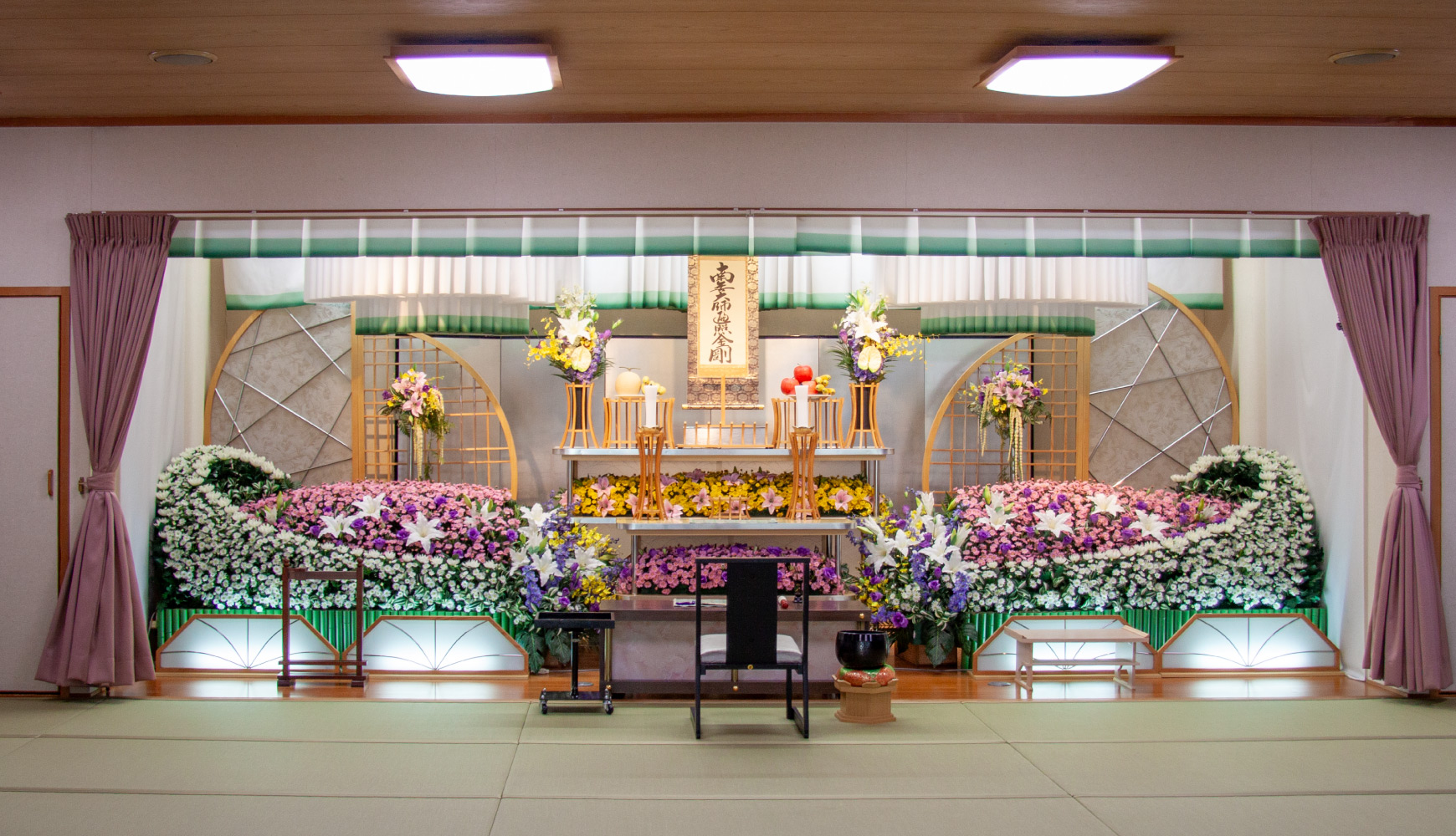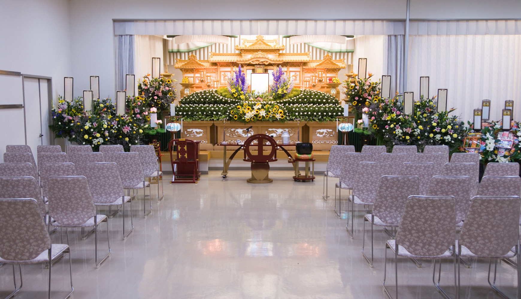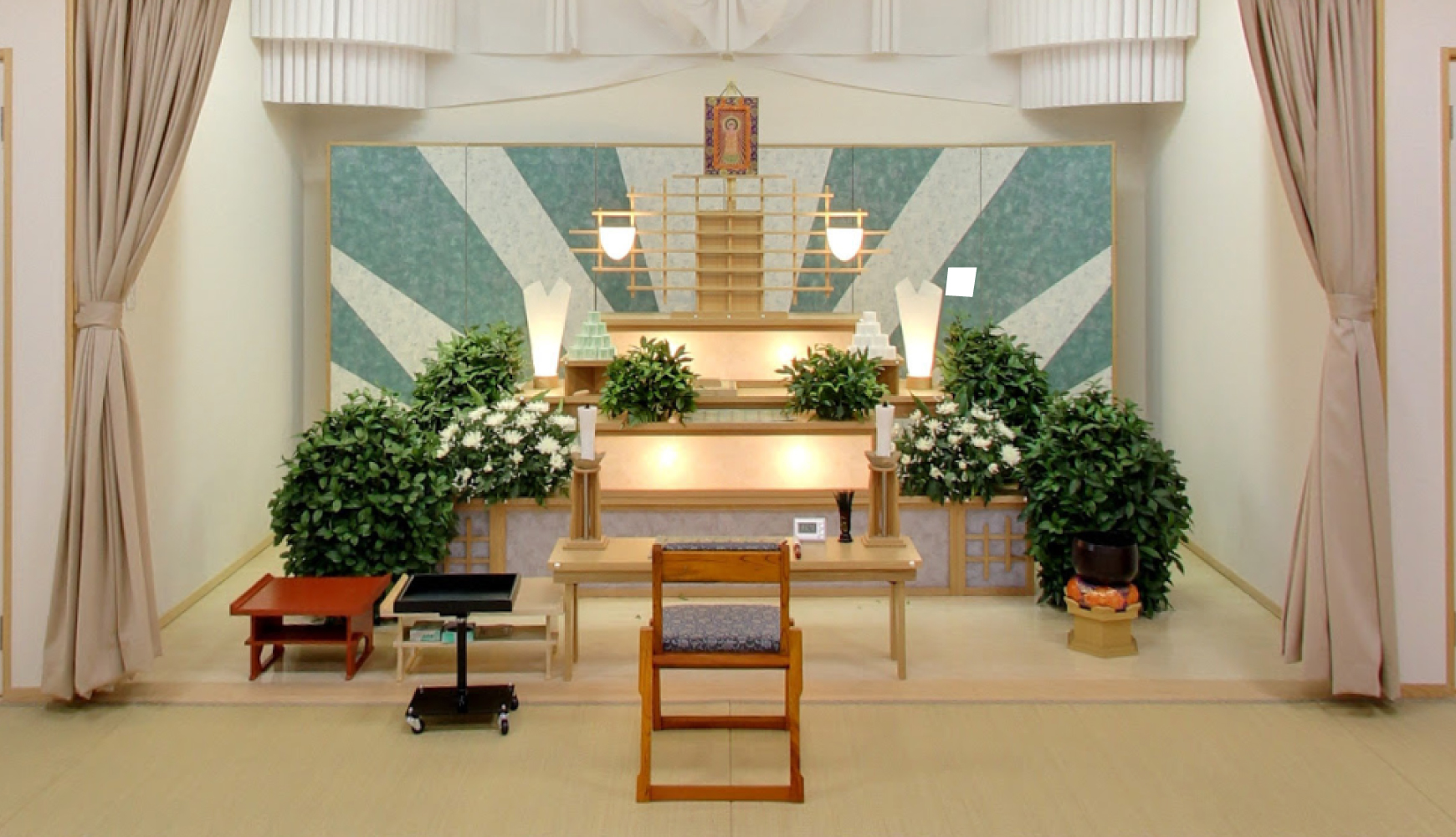 中型の祭壇を設置した式場です。